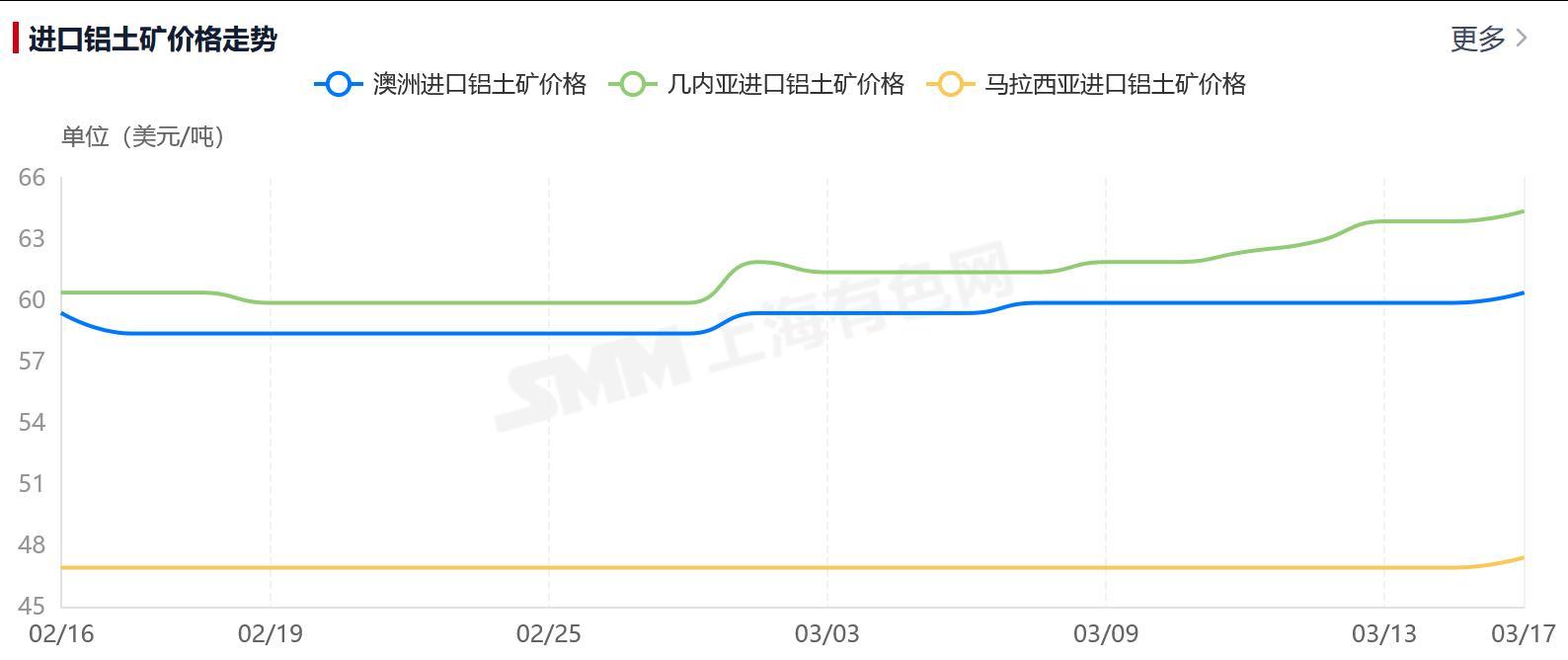 现在基准铝土矿到岸价在每吨60到70好意思元之间。