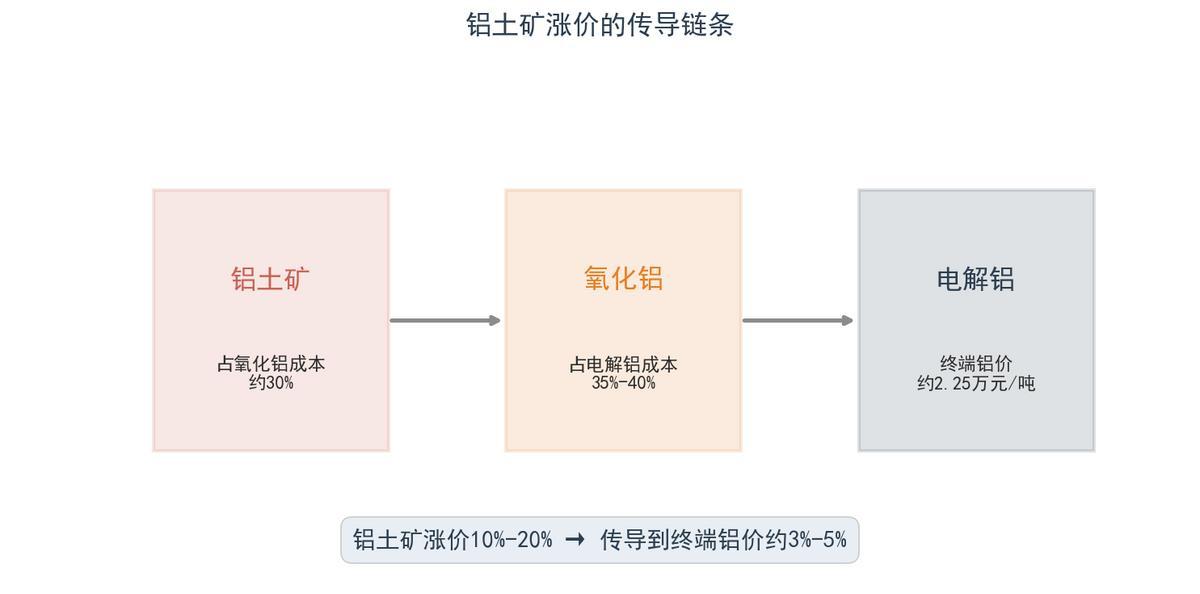 铝土矿价钱即便反弹,传导到末端铝价还需要进程氧化铝和电解铝两个门径。现在LME铝价在每吨3100到3400好意思元之间,折合东谈主民币约2.25万到2.47万元。氧化铝在电解铝成本中的占比约莫在35%到40%之间,铝土矿在氧化铝成本中的占比又惟一30%傍边。层层传导下来,铝土矿加价对末端铝价的影响会被稀释不少。