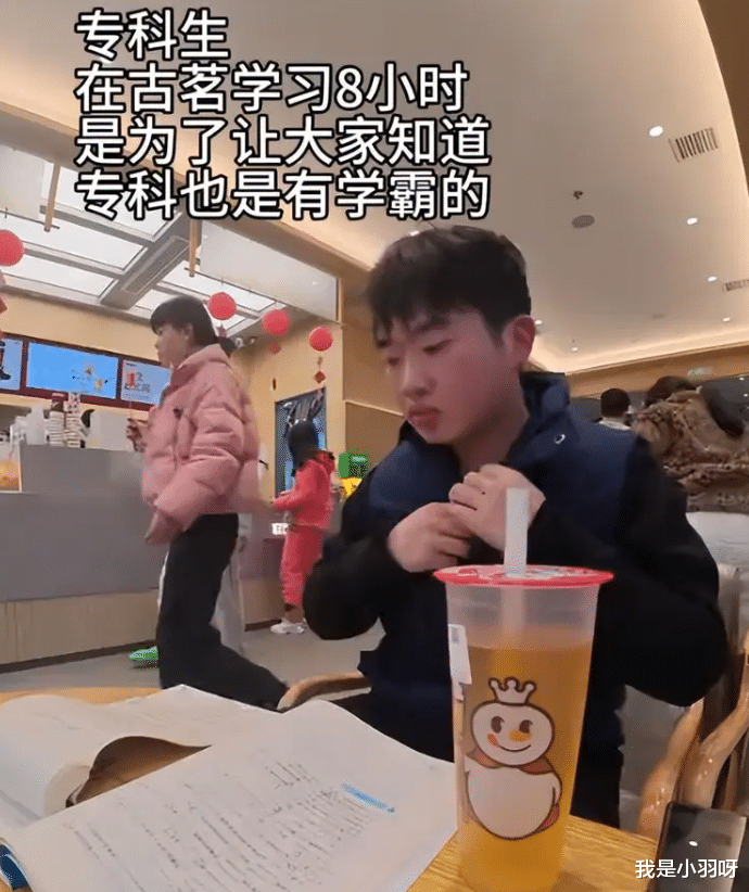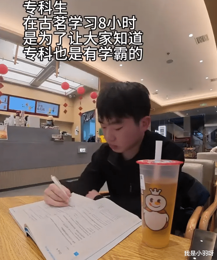 有个专科男生,买了一杯蜜雪冰城,跑到古茗店里学了八个小时,还拍了条视频。