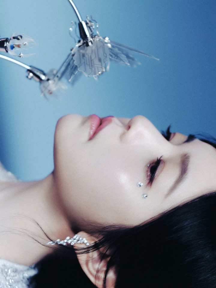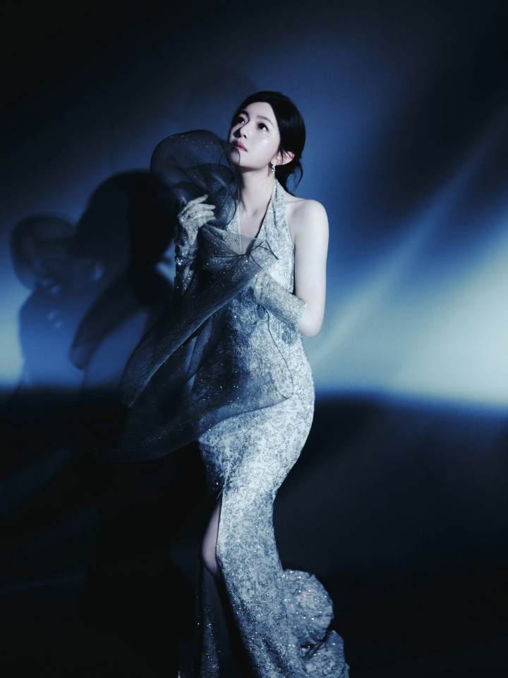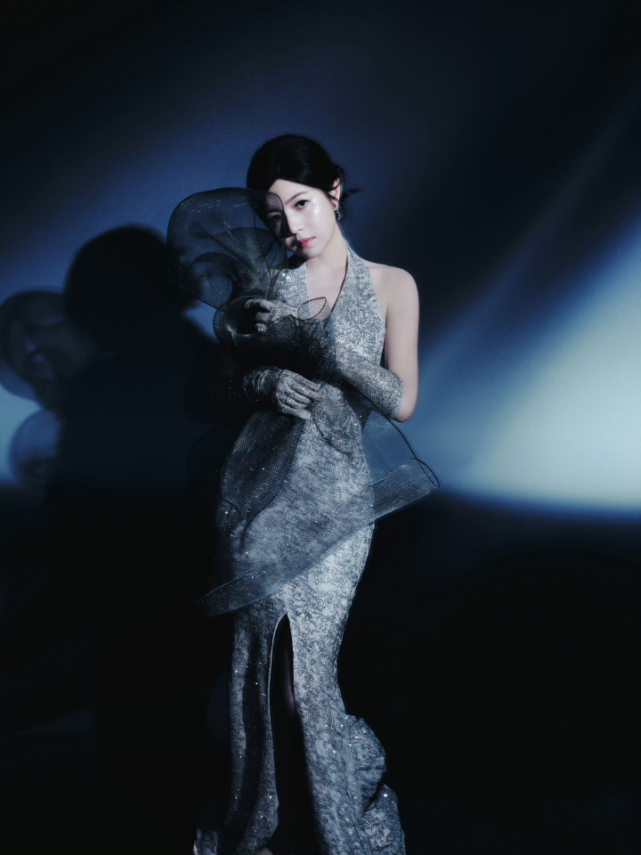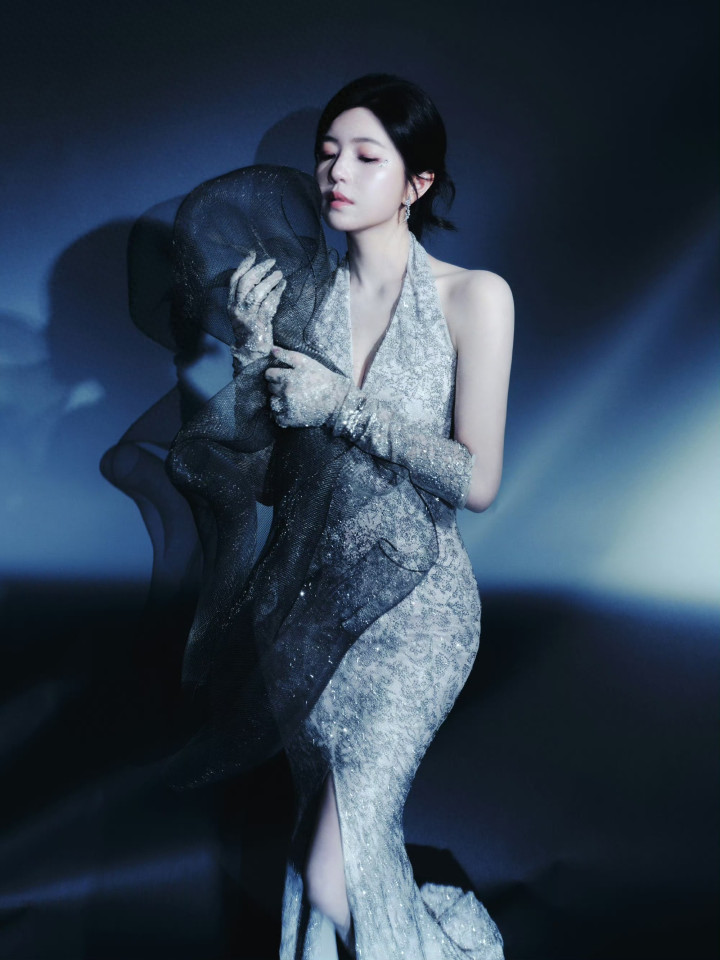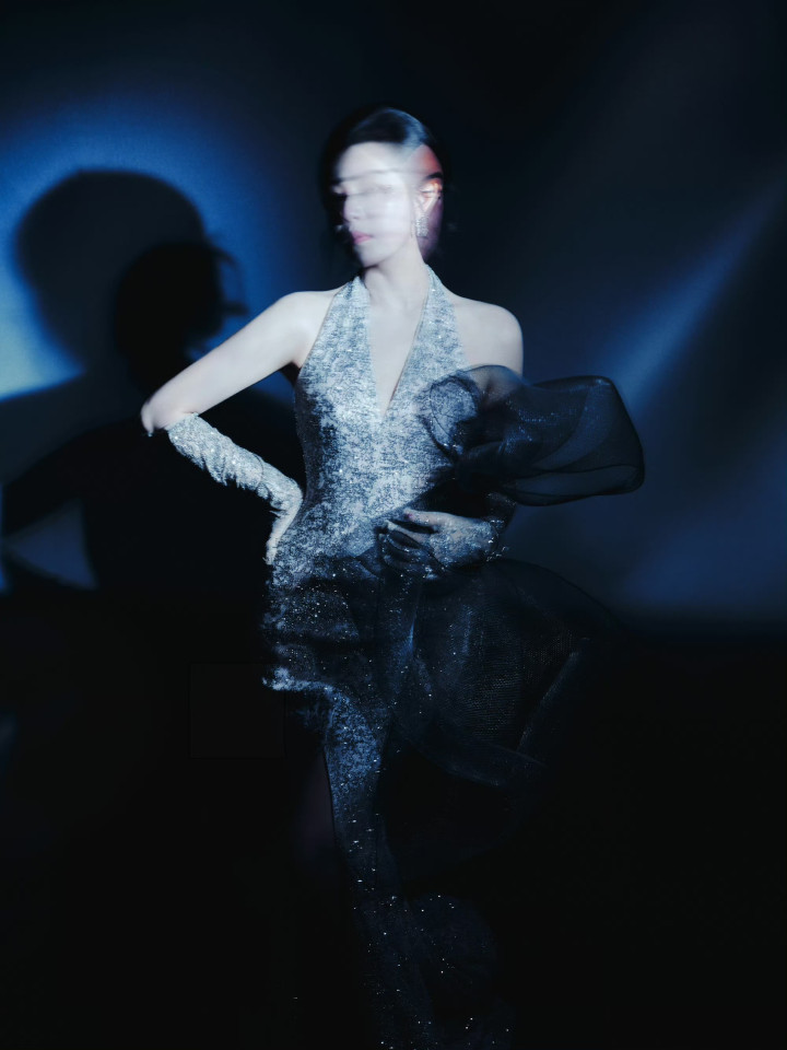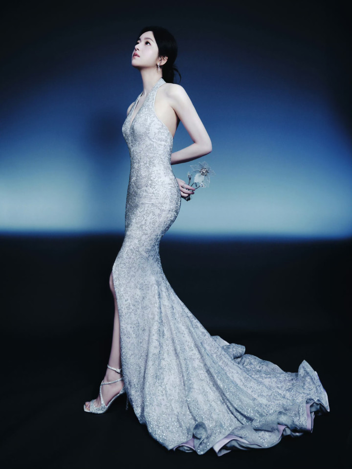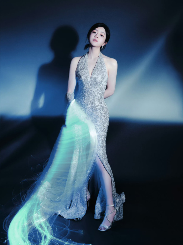 九游ninegame 陈妍希银色挂颈深v连衣裙