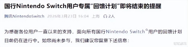 凭证权术,国行NS将于2026年3月31日22时,住手所有游戏和软件销售作事。
