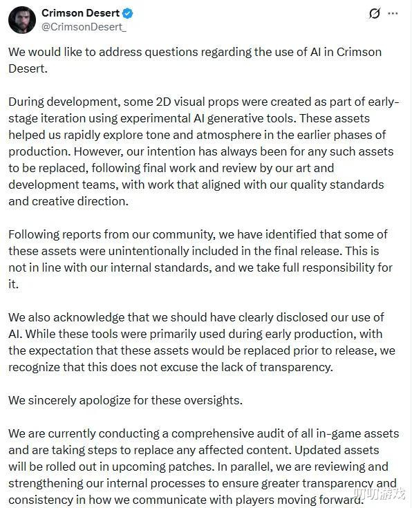 8、《红色沙漠》光速滑跪,承认使用ai并将改正