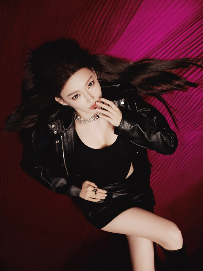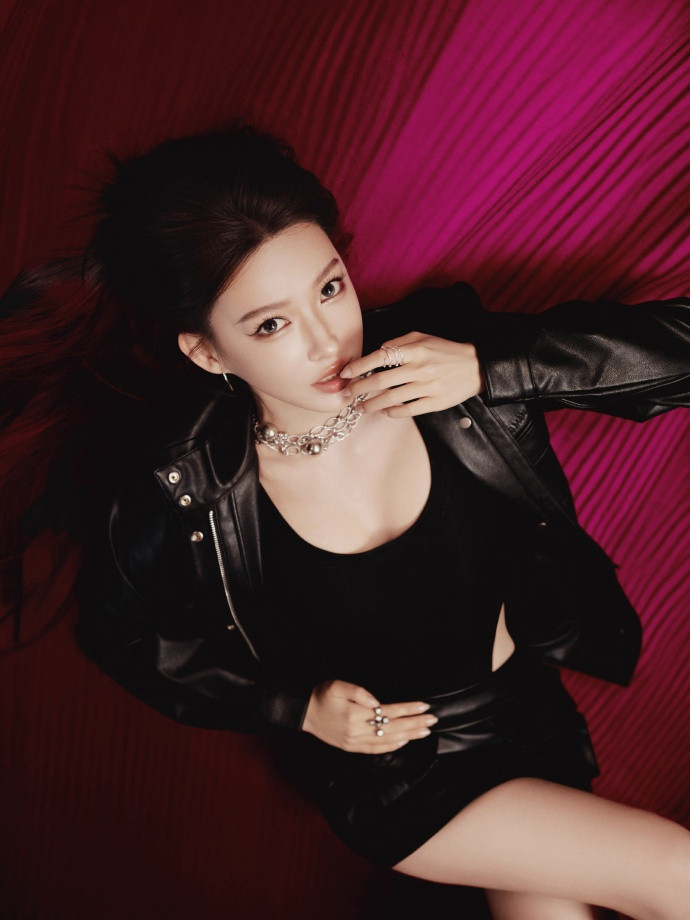 程潇的全黑皮衣套装,九游娱乐又 A 又媚到发光