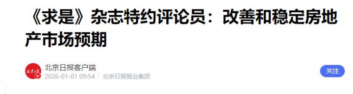 就在2026年1月1日,我国最为巨擘的杂志《求是》发布了一篇名为《改善和踏实房地产市集预期》的著作。