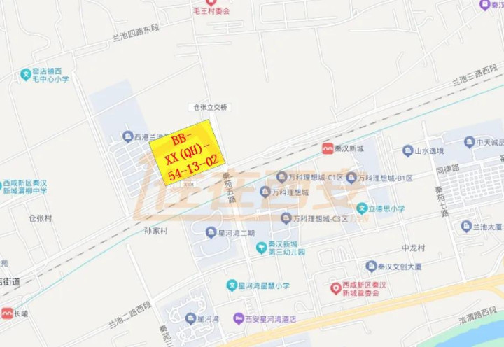 地块一,宗地编号BB-XX(QH)-54-13-02,地块位于秦汉新城兰池三路以北,秦苑四路以东,同辙路以南,秦苑五路以西。