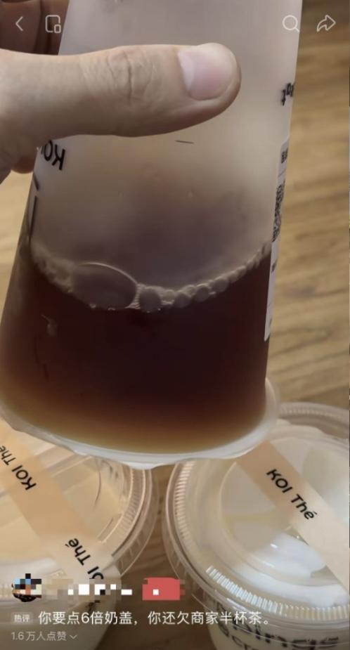 KOI品牌发布的说较着示,经核查,该主顾购买时添加了多份玛奇朵(奶盖),出于“为主顾预留富余空间搅动或添加其他小料”的初志,相应减少了茶汤的比例。这一操作本意是为提高饮用的生动性与兴致性,但推行履行中未能明晰传达给主顾,且容易激发“茶量不及”的歪曲,这是品牌贪图逻辑与疏通机制上的较着不及。