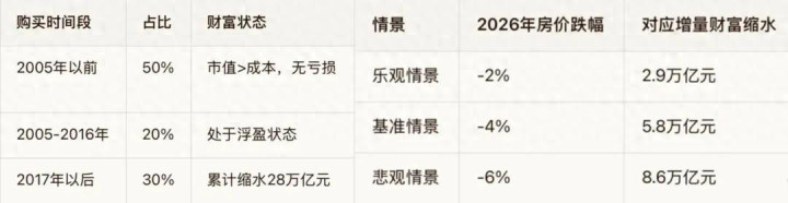 如今回看2017年峰值和低谷的房价,跌幅还是达到20%,这部分房产占总量30%,对应住房钞票缩水达28万亿元。